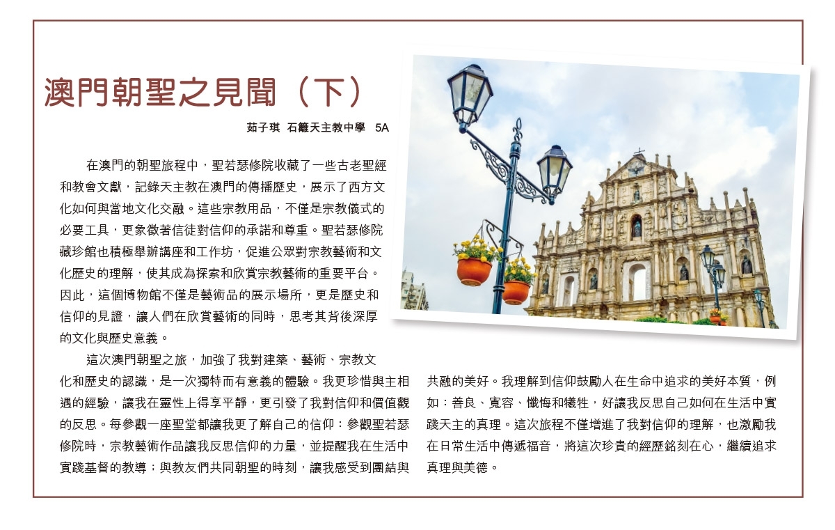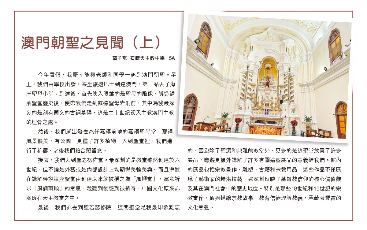 公教報投稿 - 澳門朝聖之見聞 5A茹子琪