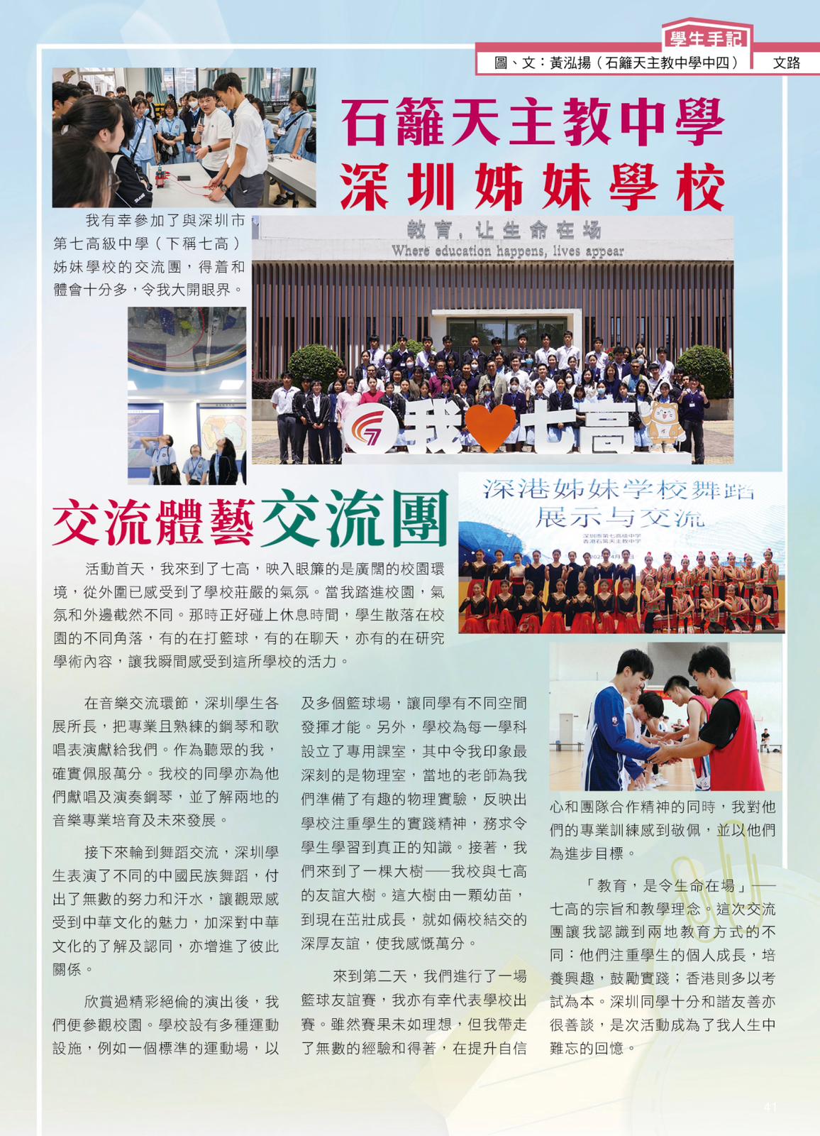 《文路》雜誌學生投稿-石籬天主教中學深圳姊妹學校體藝交流團-4B黃泓揚