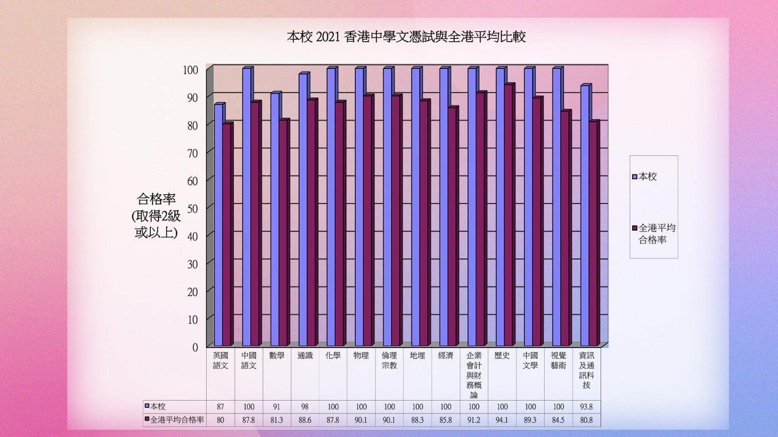 2021香港中學文憑試 本校學生成績